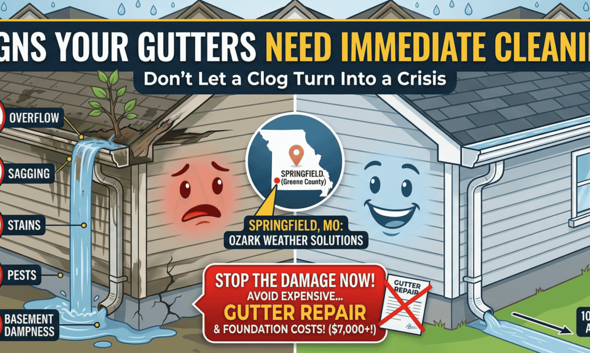 Your home will usually tell you when it’s struggling. Whether it’s a waterfall over your front door, a stray weed growing on your roof, or a musty smell in the basement, ignoring these signs in Springfield is a costly gamble.