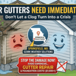 If you live in Springfield, Nixa, or Ozark, you know the “Saturday Morning Dilemma.” You walk outside, look up at your eaves, and see the tell-tale sign of a clog: a small maple sapling or a clump of wet leaves peeking over the edge.